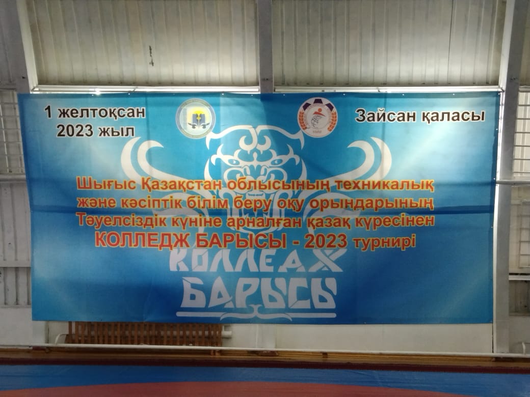 01.12.2023 ж. күні Зайсан қаласында Қазақстан Республикасының Тәуелсіздік күніне арналған Шығыс Қазақстан облысының білім басқармасы «Зайсан аудандық бұқаралық спортты дамыту орталығы» кешенінде техникалық және кәсіби білім беру ұйымдарының студенттері арасында қазақ күресінен дәстүрлі «Колледж Барысы- 2023» облыстық жарысын өткізді. Жарысты Зайсан технология колледжі ұйымдастырды.