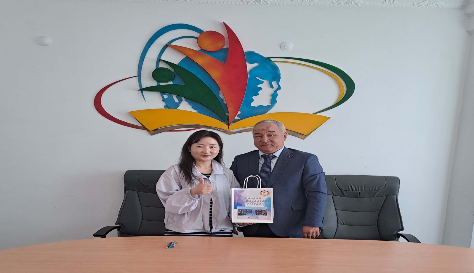 30.05.2025 ж. күні Зайсан технология колледжінде ҚХР Чэнду өнекәсіп және сауда кәсіптік- техникалық колледжінен профессор, қаржы және сауда мененджменті мектебінің декан орынбасары Лин Цзе мен аталған колледждің электротехника факультетінің доценті, декан орынбасары Ли Шаньшан Зайсан технология колледжінің әкімшілік мүшелерімен кездесті. Кездесуде тараптар екі ел колледжінің қызметі жайлы әңгімелесіп, ынтымақтастықтың бағыттары мен болашағынан ой бөлісті. Лин Цзе ханым мен Е.Т.Сейлханов мырза өз колледждері жайлы слайдпен көрсете отырып таныстырды. Шетелдік әріптестер студенттермен де әңгімелесіп, сабақтарына қатысты. Колледждің техникалық базасын аралап, таныстырылды. Нәтижесінде болашақта шетелдік әріптестермен тәжірибе алмасу мақсатында уағдаластықты бекіткен екі жақты меморандумға қол қойылды.