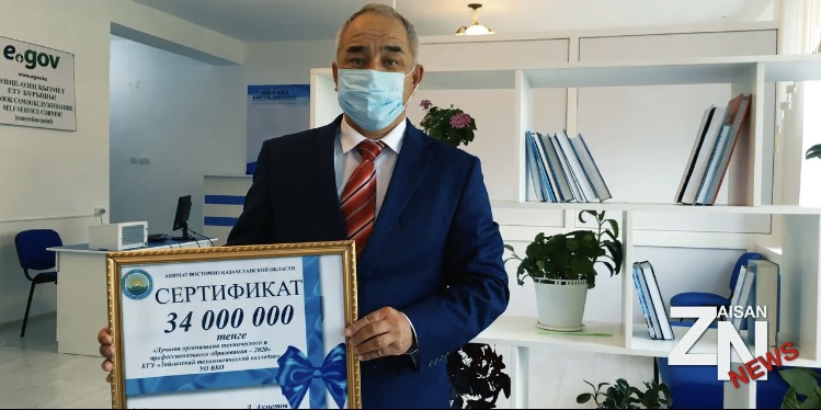 « Техникалық және кәсіптік білім беру-2020» байқауында «Үздік» деп танылып, Шығыс Қазақстан облысының әкімі Д.Ахметовтың қолынан