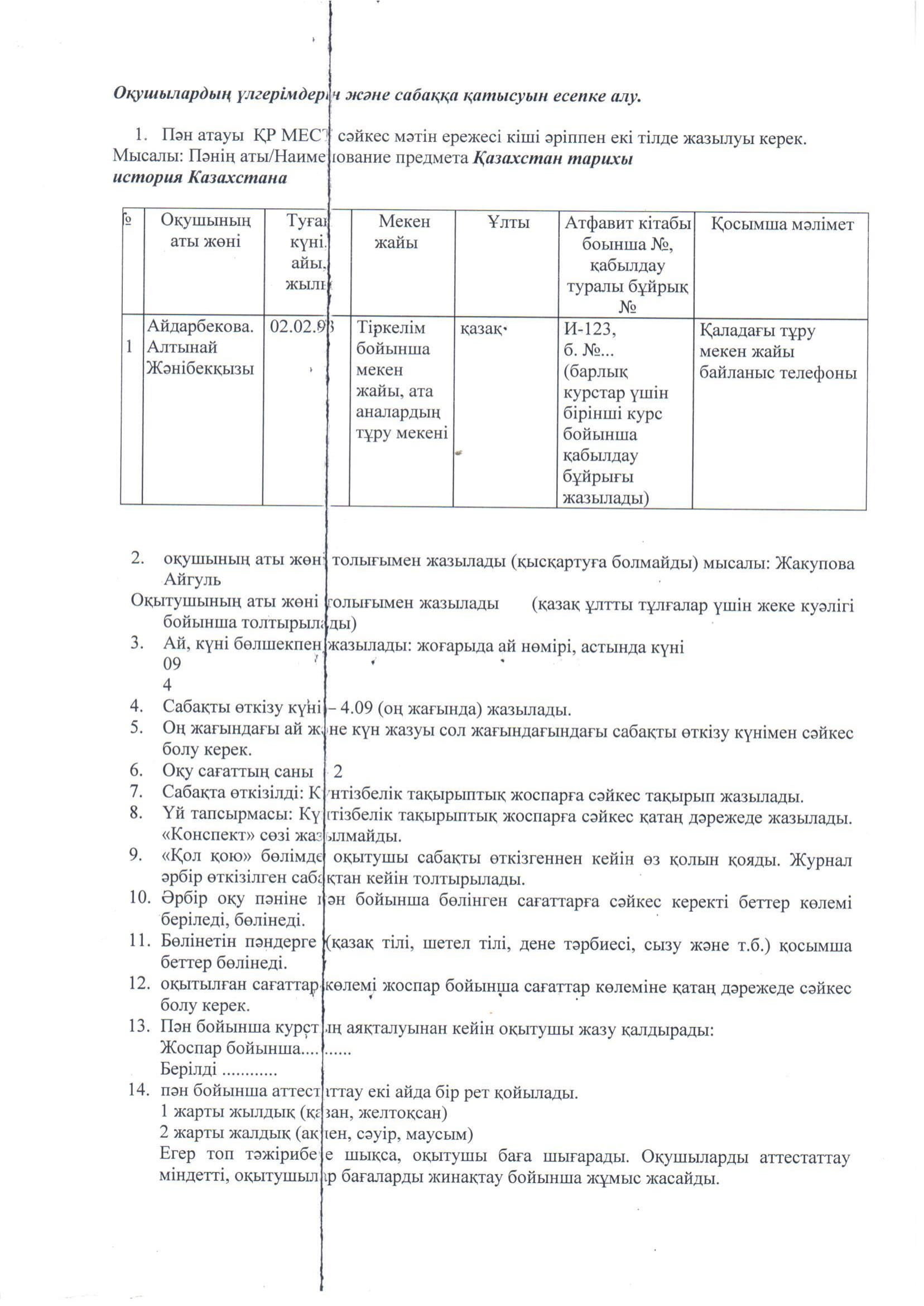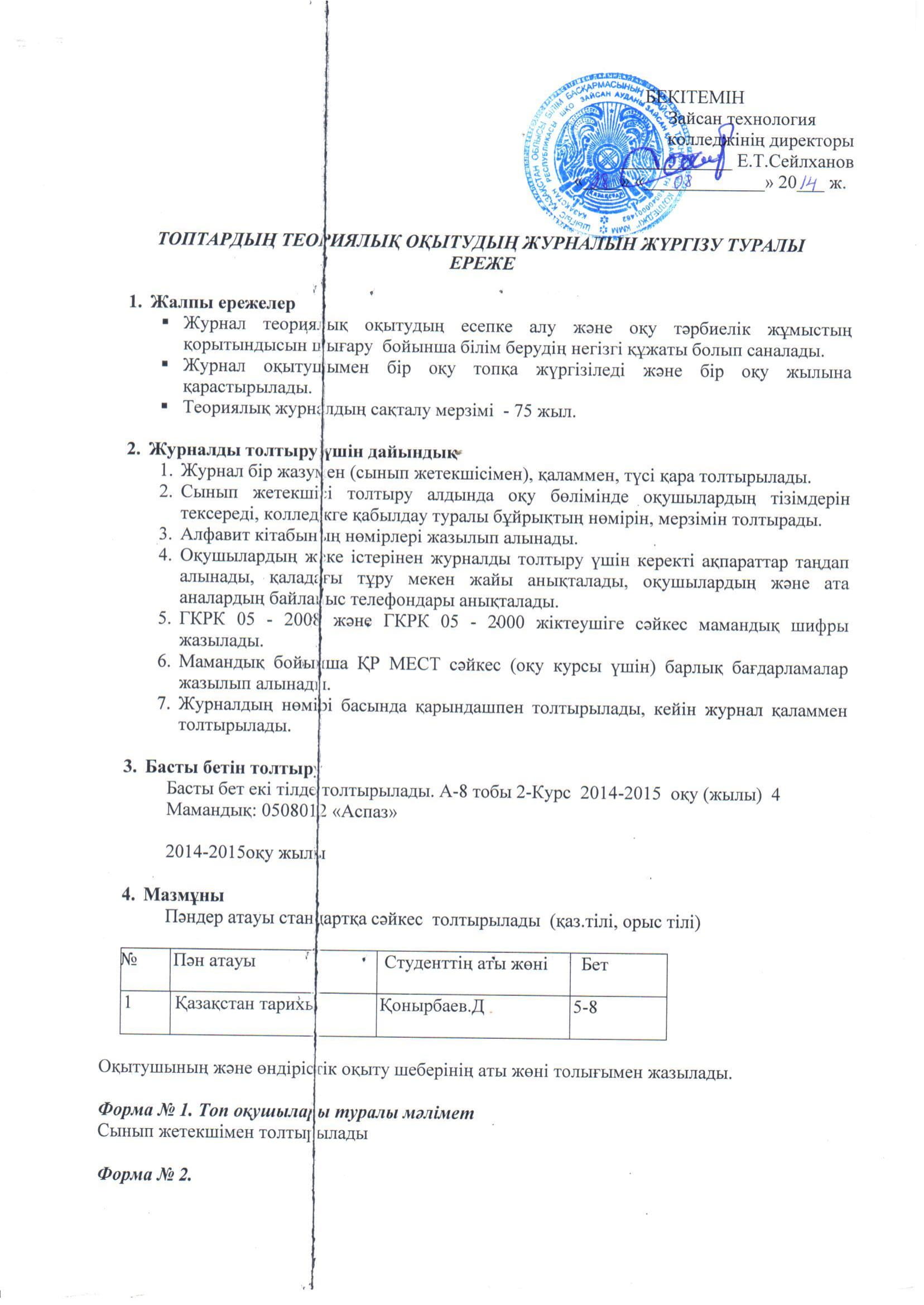 Теориялық журналды жүргізу туралы ереже