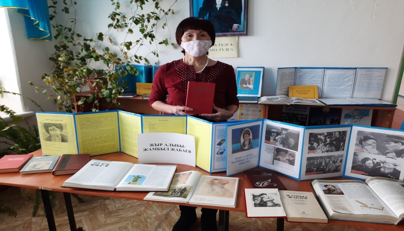 Колледж кітапханасында Жамбыл Жабаевтың 175 жылдық мерейтойына арналған «Жыл алыбы- Жамбыл Жабаев» атты кітап көрмесі ұйымдастырылды. Көрмеге қойылған ақынның кітаптары, өмірбаяны жайлы буклеттермен аспаз А-11 тобының студенттері таныстырылды. Студенттер ақынның «Ленинградтық өренім» өлеңі және Москваға барған сапары туралы өз ойларымен бөлісті.