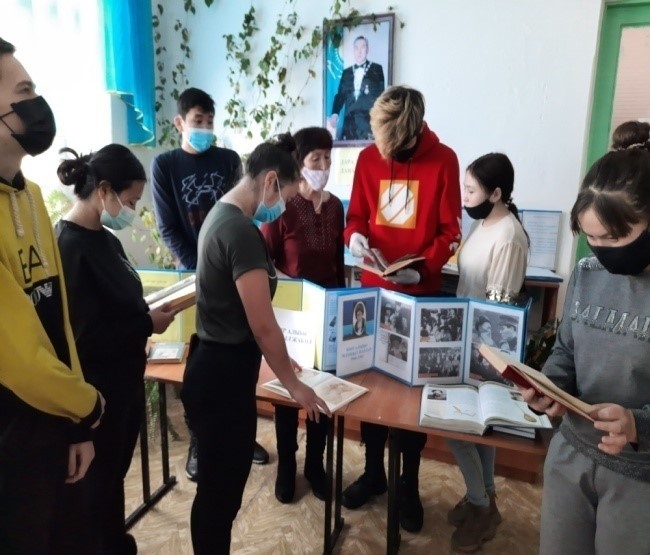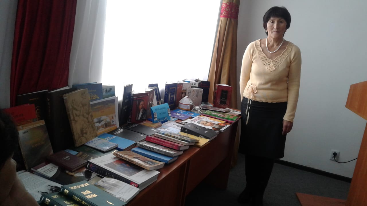 Абай Құнанбаевтың 175 жылдығына арнап «Ғасырдан ғасырларға жеткен үні» атты кітап көрмесі ұйымдастырылды. 2020 ж. қаңтар айында гуманитарлық пәндер бірлестігі ұйымдастырған «ҰЛЫ ХАЛЫҚТЫҢ-ҰЛЫ АБАЙЫ» атты онкүндік аясында курс студенттерін кітап көрмесіне қойылған ақын шығармаларымен кітапханашы