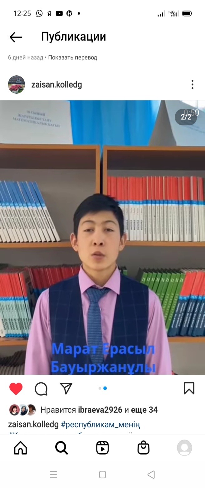 Қазақстан Республикасы Оқу-ағарту министрлігі және Республикалық ғылыми-педагогикалық кітапханасы «Оқуға құштар колледж» жобасы аясында 25-қазан Республика күніне орай ұйымдастырған «Республикам менің» атты челленджге ВФ-1 тобының студенттері Ғалымбекұлы Жарқын, Марат Ерасыл Бауыржанұлы қатысып, өз үлестерін қосты. Ғалымбекұлы Жарқын Мұқағали Мақатаевтың «Отан», Марат Ерасыл Бауыржанұлы жерлес ақынымыз Ұлықбек Есдәулеттің «Қазақстан» атты өлеңдерін мәнерлеп жатқа айтты.