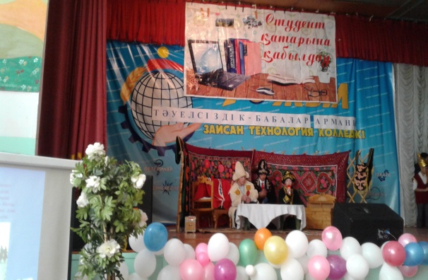 2019 жылы колледждің акт залында оқытушы Г.Тлеулесова мен кітапханашы Ш.Карменова жатақхана тәрбиеленушілерімен бірлесе отырып, Тәуелсіздік күніне орай «Тәуелсіздік-бабалар арманы» атты тарихи-сазды кеш өткізді. Кеш барысында студенттер өткен тарихқа үңіліп және қазіргі уақытқа байланысты ойластырылған қойылымдарға қатысып, ролдерді сомдап, мәнерлеп айту, сөйлеу мәдениеттерін дамытты.