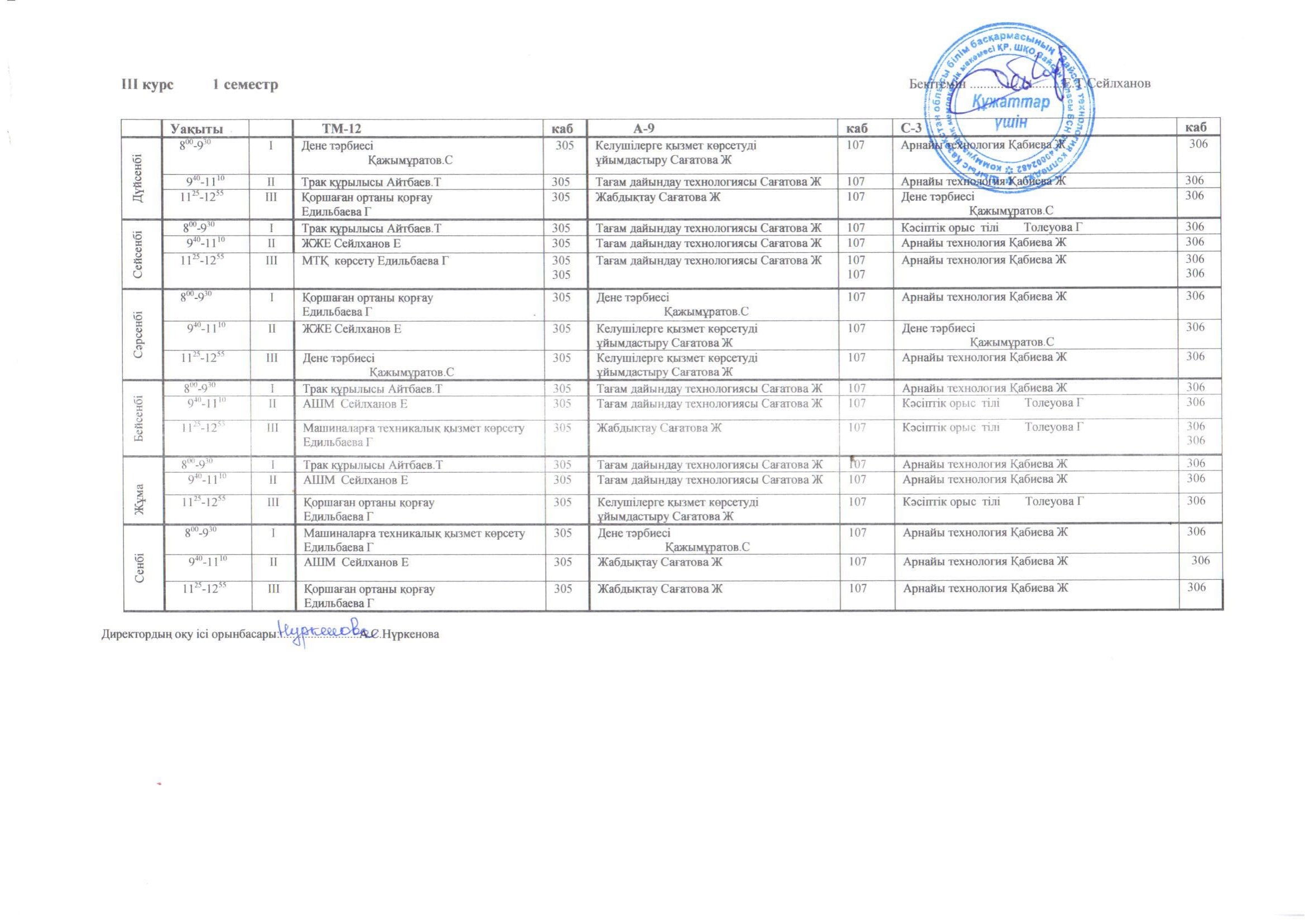 Сабақ кестесі