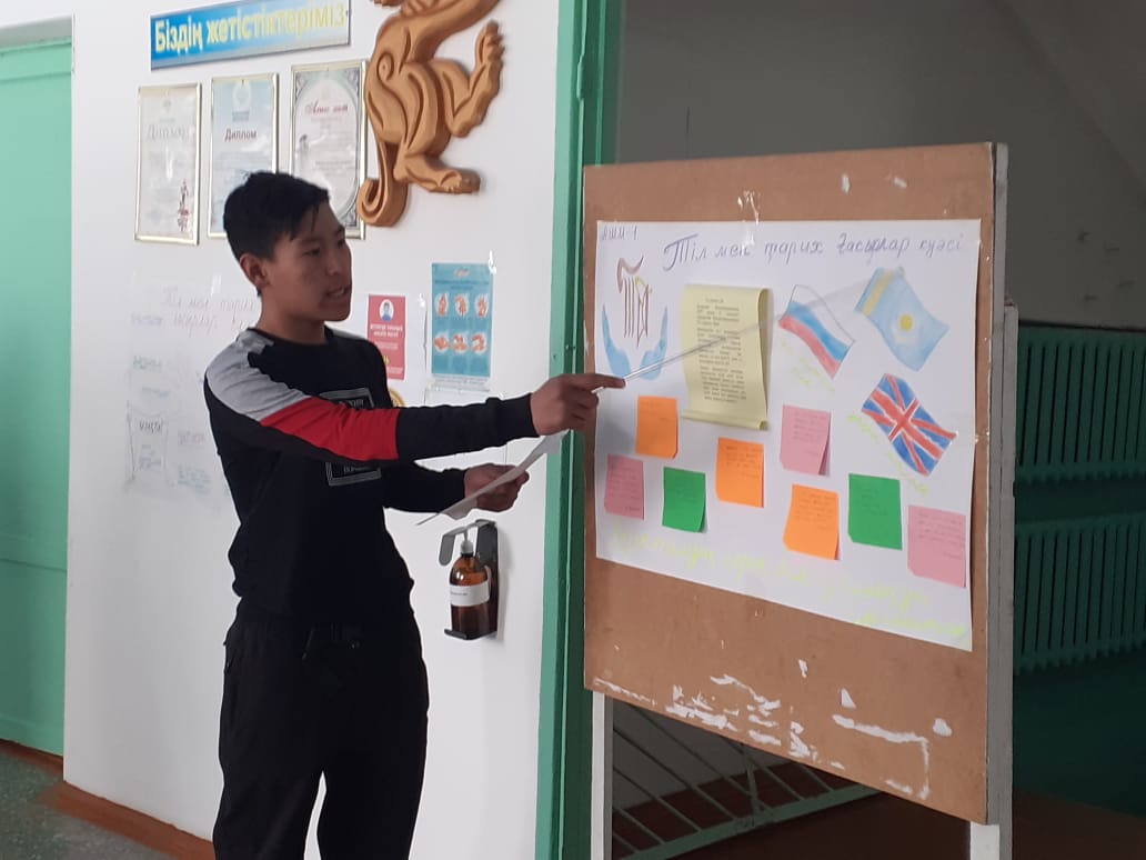 Әрбір топқа «Тіл мен тарих – ғасыр куәсі» қабырға гаезттерін шығарып, ілуге тапсырма берілді.