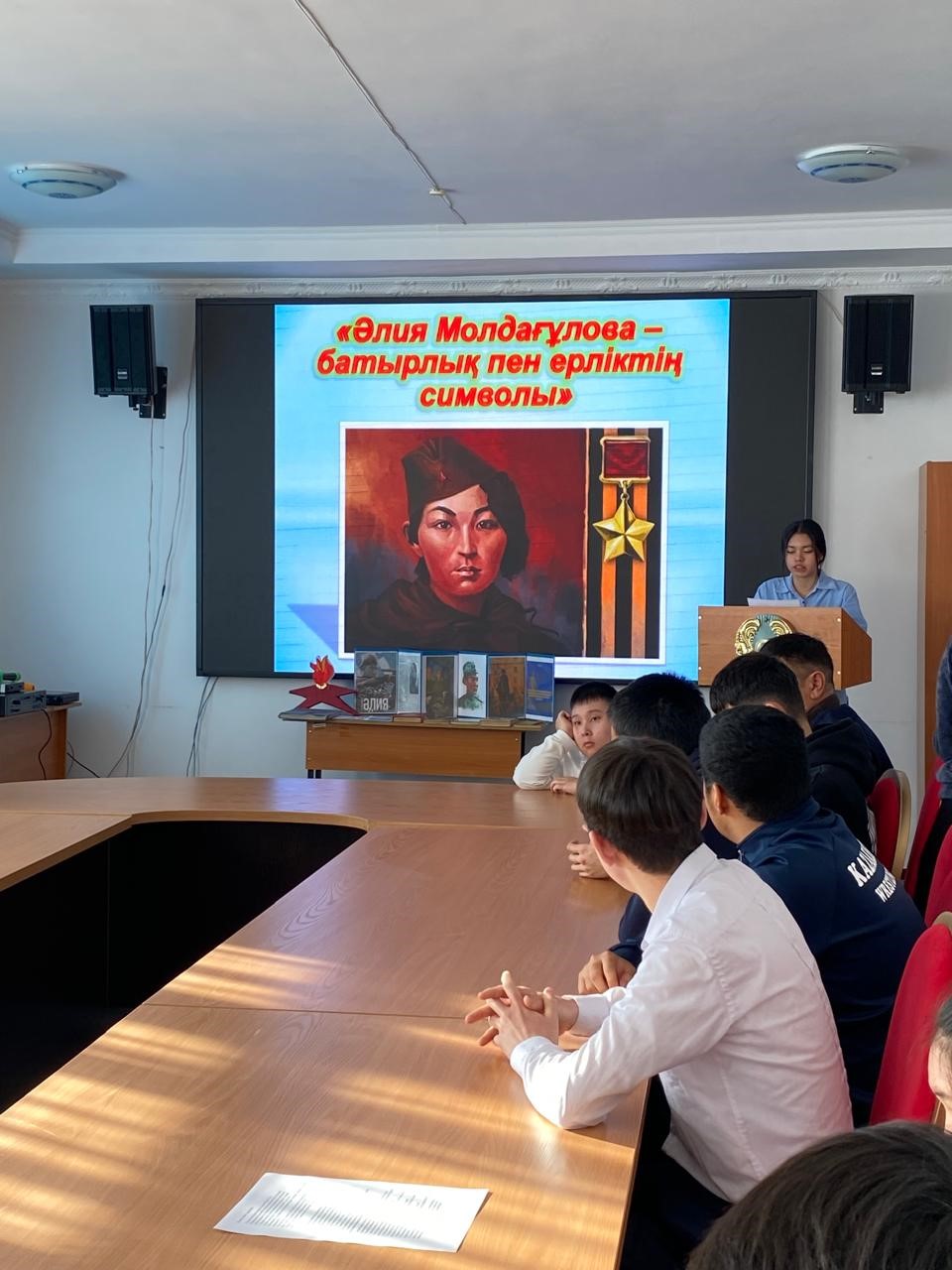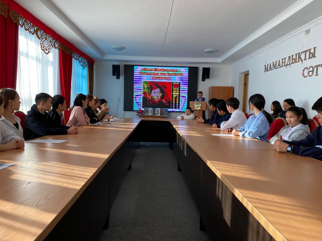 01.12.2025 күні колледждің мәжіліс залында “Әлия Молдағұлова – батырлық пен ерліктің символы”атты дөңгелек үстел өтті. Тарих пәнінен ұйымдастырылған бұл іс-шарада қазақтың батыр қызы Әлия Молдағұлованың ерлігі мен өмір жолы талқыланды, бейнематериалдар көрсетілді.