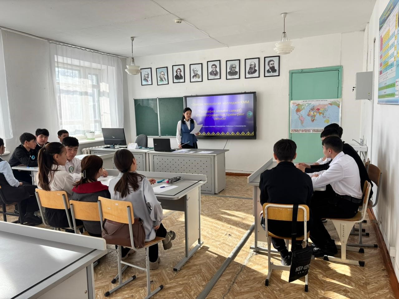 25.11.2025 күні география пәні бойынша ұйымдастырылған “География әлеміне саяхат” брейн-ринг сайысы студенттердің логикалық ойлауын, картамен жұмыс істеу дағдыларын және жалпы дүниетанымын кеңейтті. Сайысты ұйымдастырған пән оқытушысы Слямханова Ұ.С.