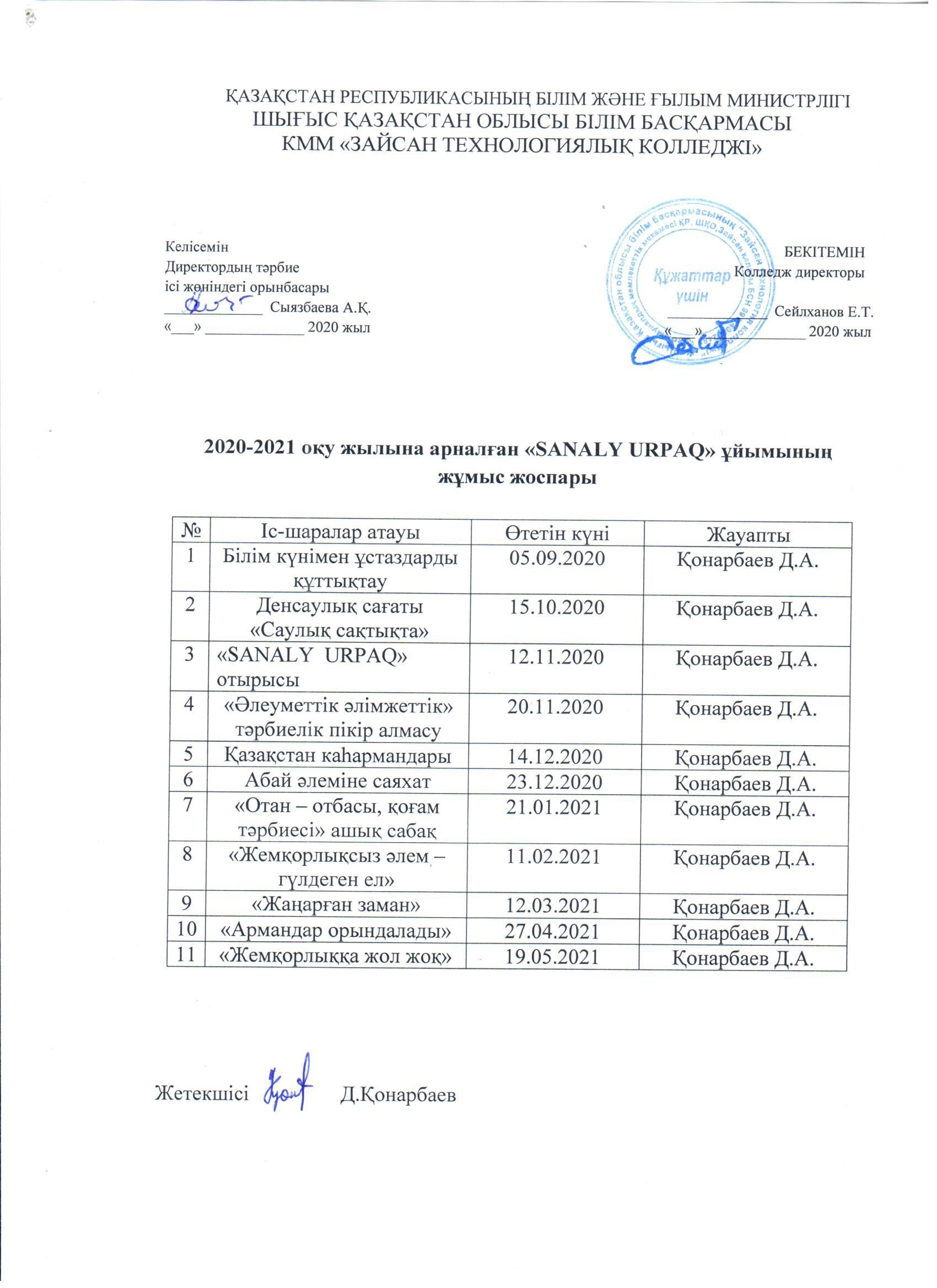 Саналы урпак жобасы 2018-2020 ж.ж.