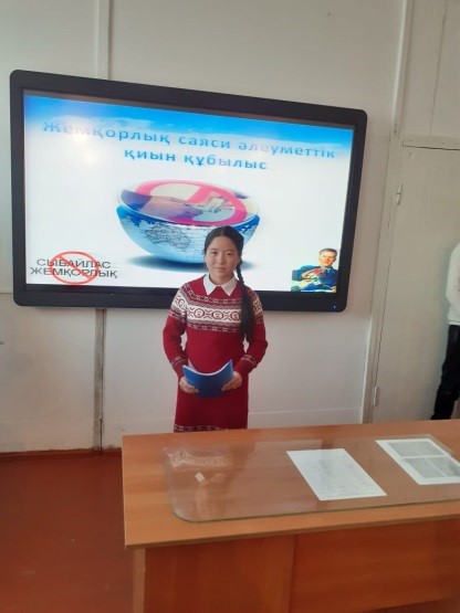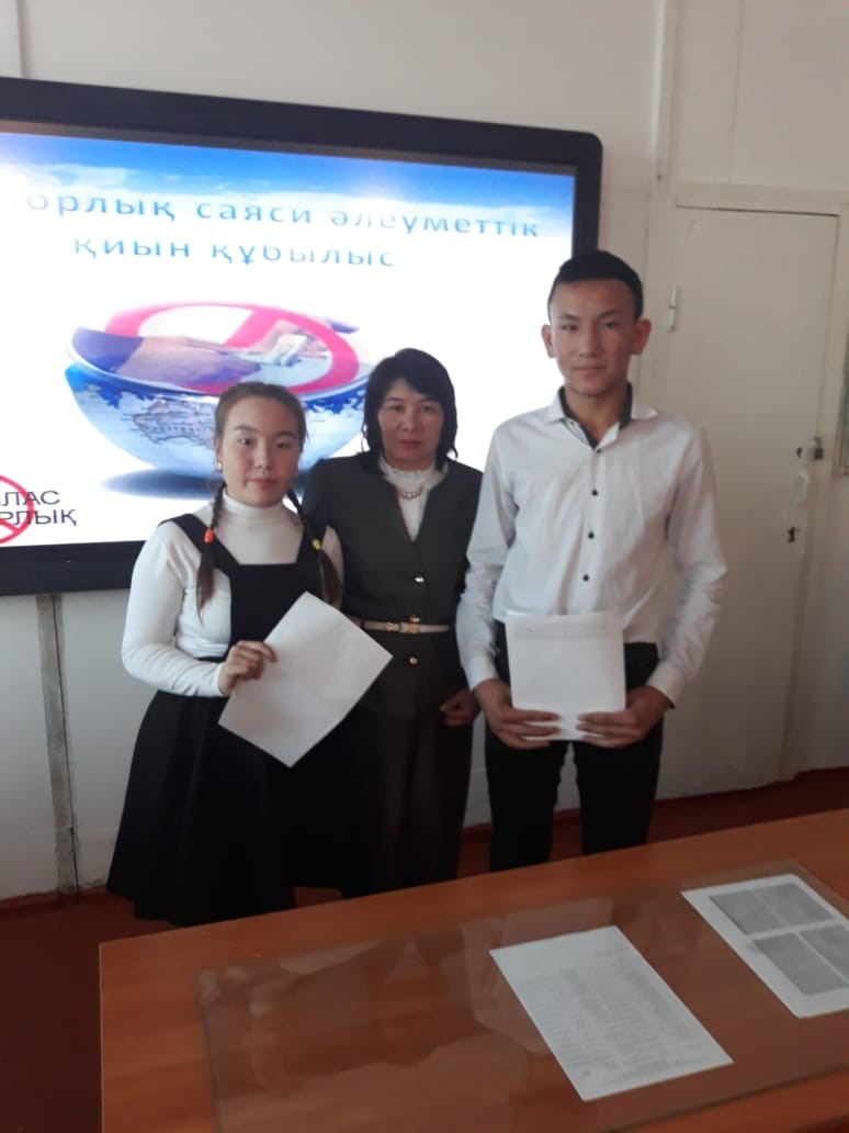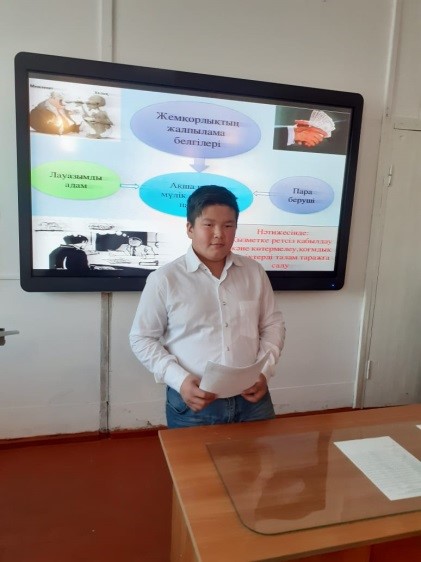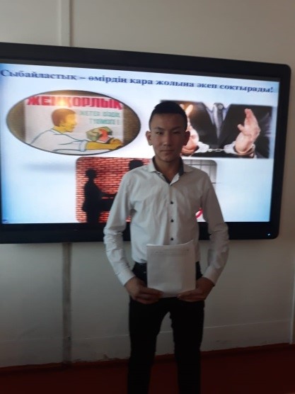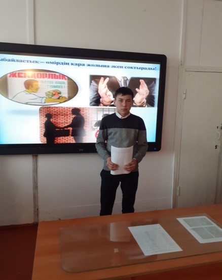 Тарих пәнінің оқытушысы Д.Қонарбаев“Сыбайлас жемқорлық- қазіргі заман дерті” тақырыбында дәріс оқыды.