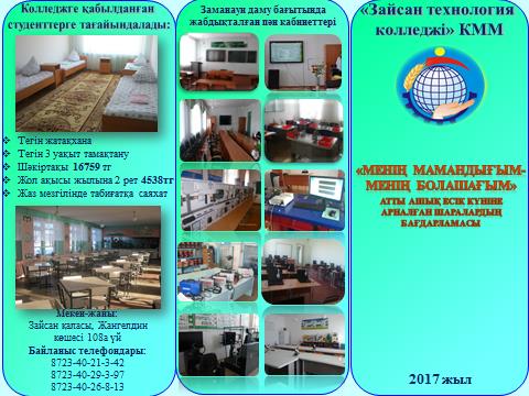 2017 жылдың 27қаңтар күні «Зайсан технология колледжі» КММ-де«Менің мамандығым-менің болашағым» атты «Ашық есік» күні өткізілді. Аудандық білім бөлімінің бастығының келісімімен қалалық және ауылдық мектептердің 9-11 сынып оқушылары шараға қатысуға шақырылды.