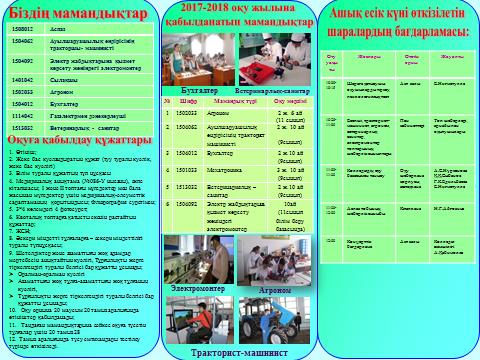 «Үздік тракторист-машинист» кәсіби шеберлік сайысы өтті. Әр шараға мектеп оқушыларынан «Жол көрсетуші» (Путеводитель) курстарына тіркелген оқушылар қатыстырылды.