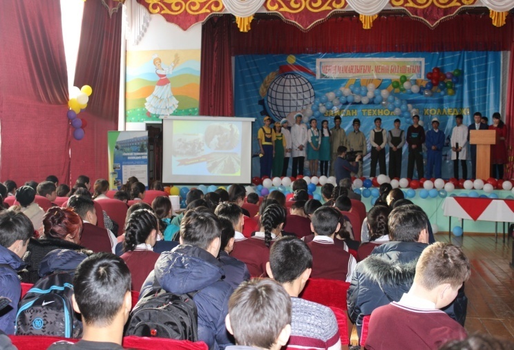 - Колледж базасымен таныстырылды:Оқу ісінің орынбасары А. Нүркенова, колледж психологі Е.Ниғметулла,аға шебер Қ.Сыбанов таныстырды.