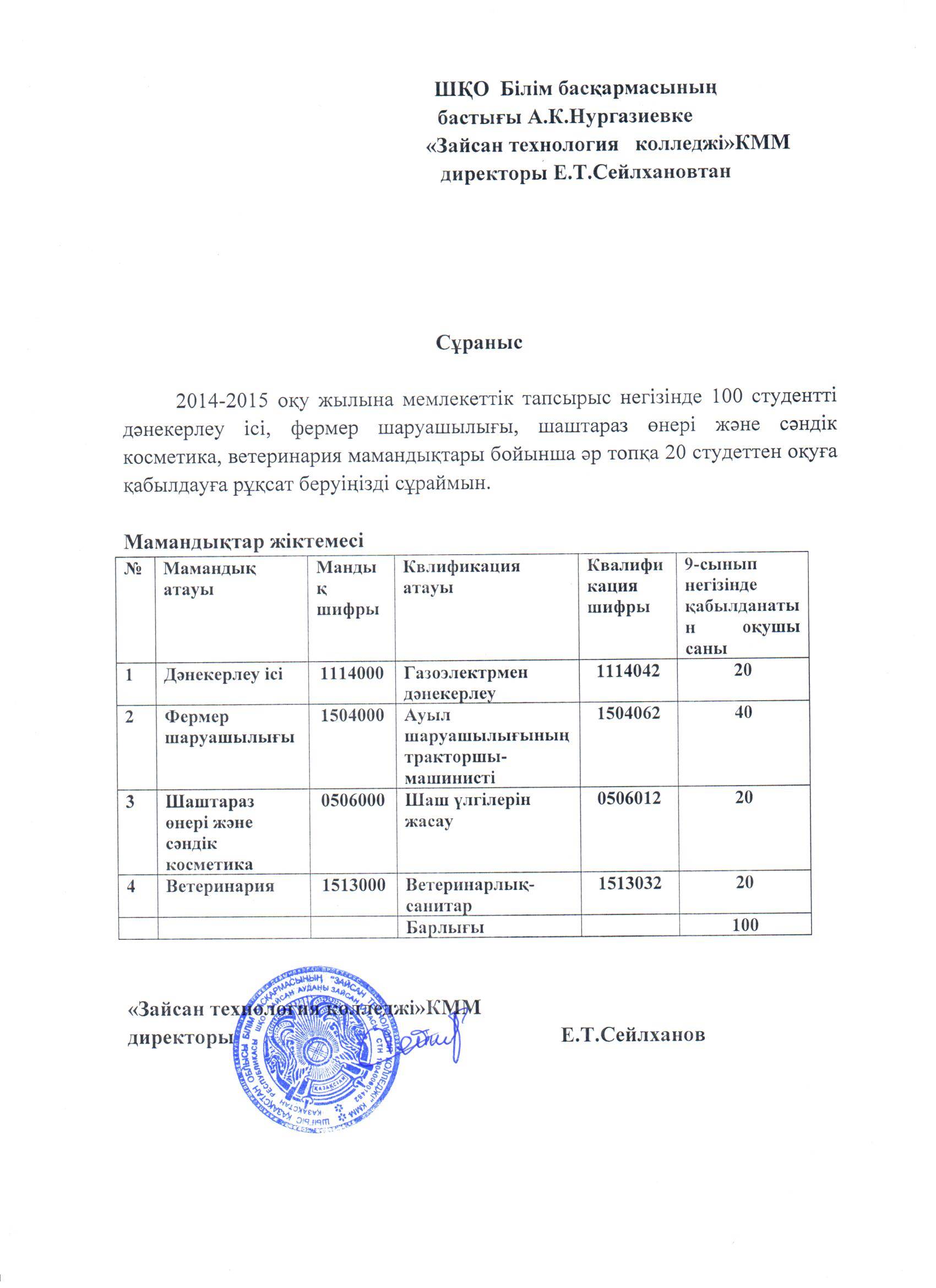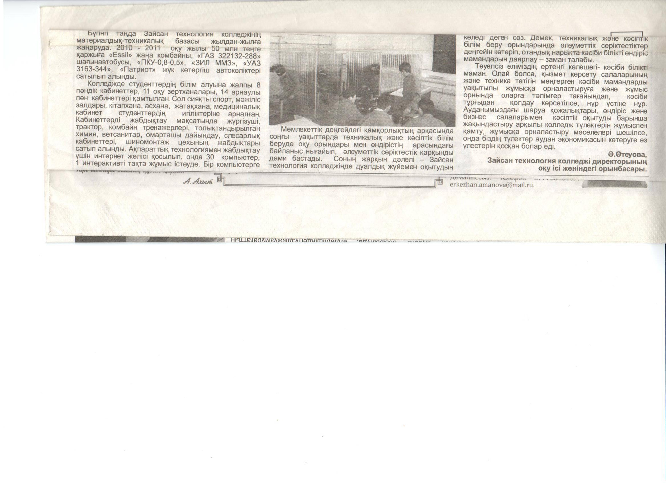 Әр оқу жылында қабылданатын мамандықтар бойынша оқушылар қабылданады. Осы мамандықтар бойынша ауданның барлық мектептеріне бекітілген мұғалімдермен оқыту шеберлері жыл көлемінде үгіт насихат жұмыстарын жүргізіп келеді. Үгіт насихат жұмыстарын жүргізу мақсатында «Зайсан технология колледжі» аудандық білім бөлімімен бірлесе отырып, «Кәсіптік мамандық таңдау және оқуға қабылдаудың қадамдық жоспарын» жасап, екі жақты бекітті. Осы жоспар негізінде әрбір мектепппен екі жақты жұмыс жоспар жасалынып, осы жоспар негізінде жауапты адамдар және үгіт насихат тобы мектептерді аралап, арнайы бағдарламамен жұмыс жүргізуде.