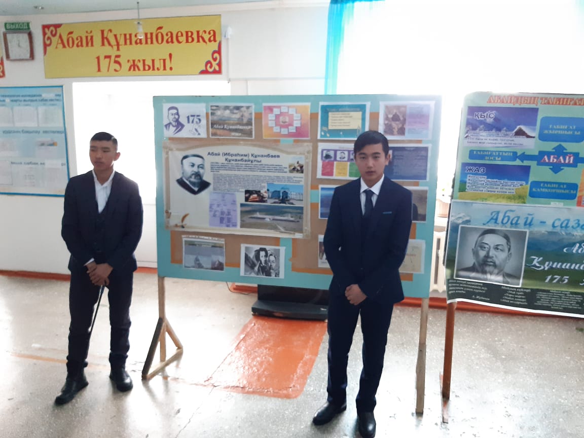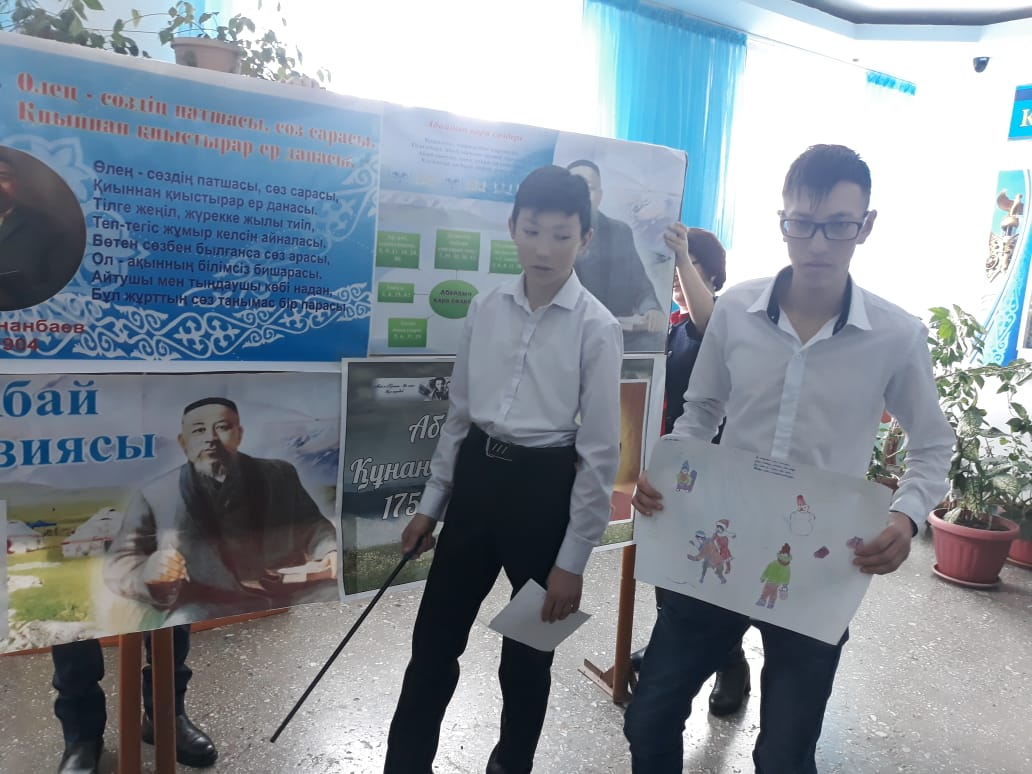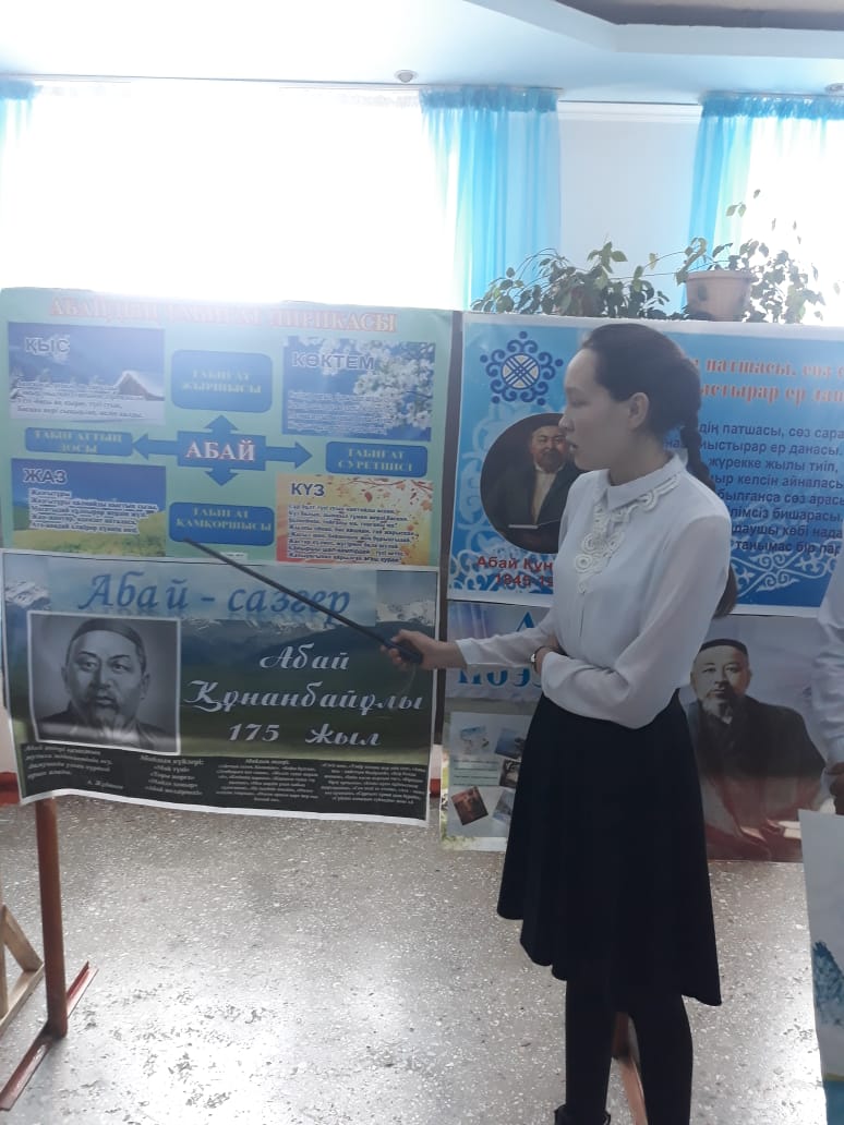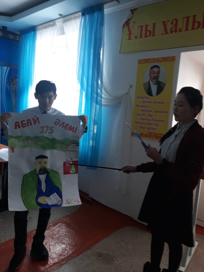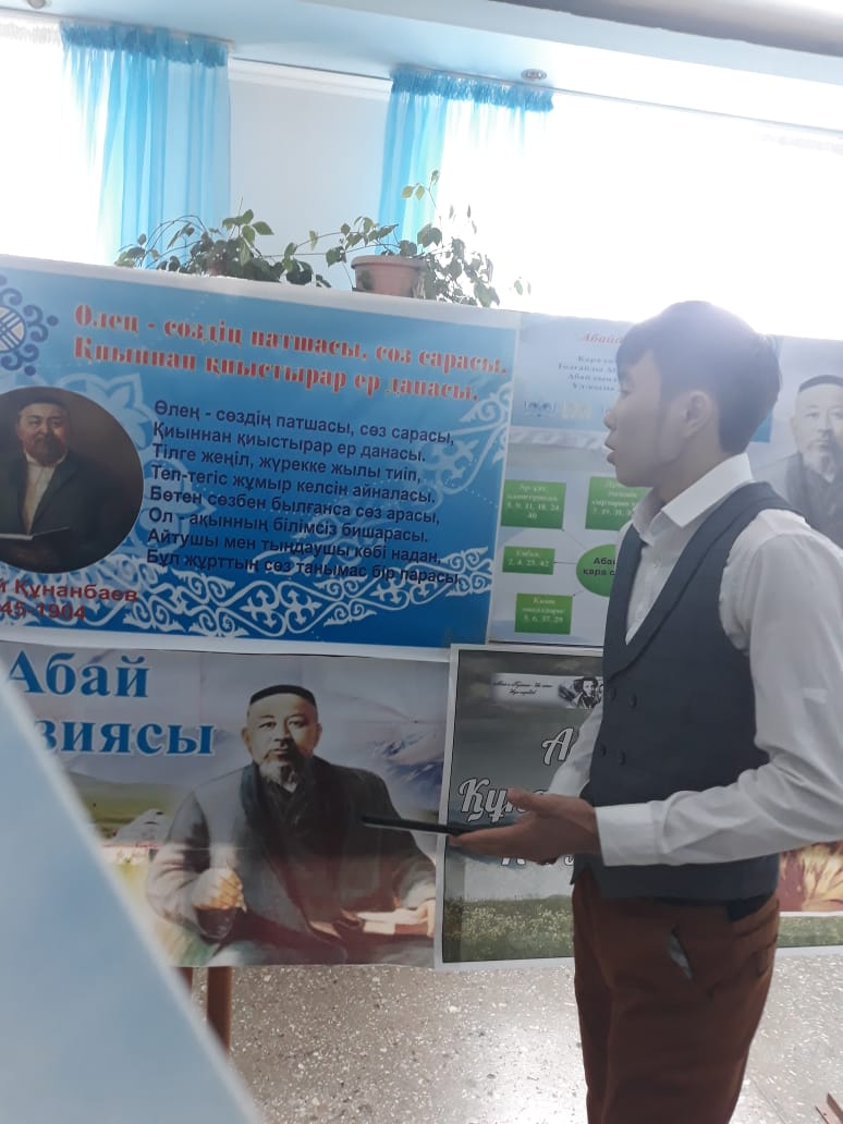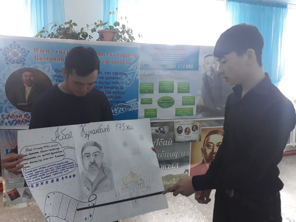 - «Адамзаттың Абайы» атты қабырға газеттерді қорғау.